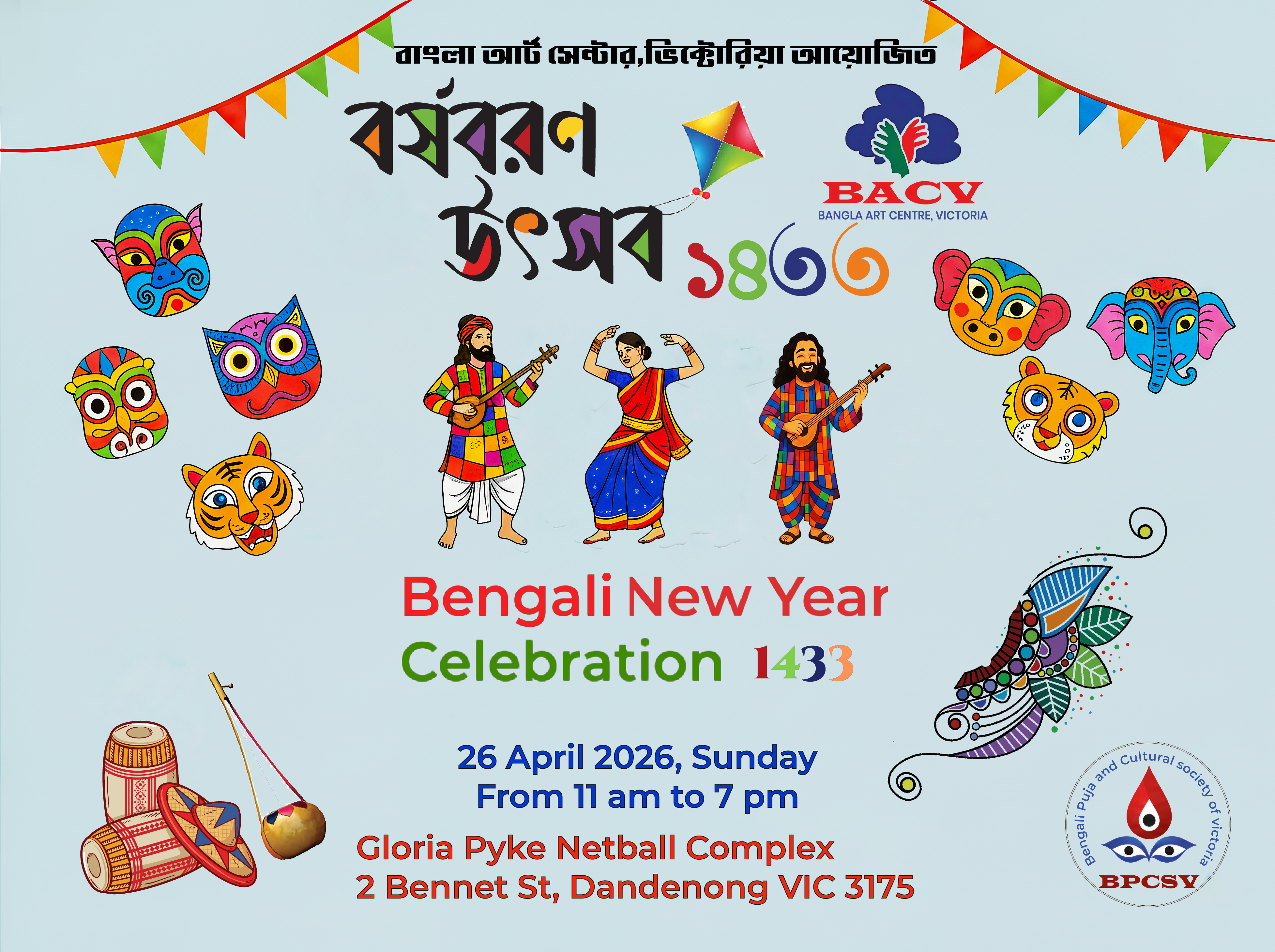 Join the Bangla Centre Victoria (BACV) on Sunday, April 26, 2026, as we unite the rich heritage of Bengal with the harmony of Australia’s multicultural community. This is more than an event; it’s a journey of tradition, artistic expression, and meaningful connection.